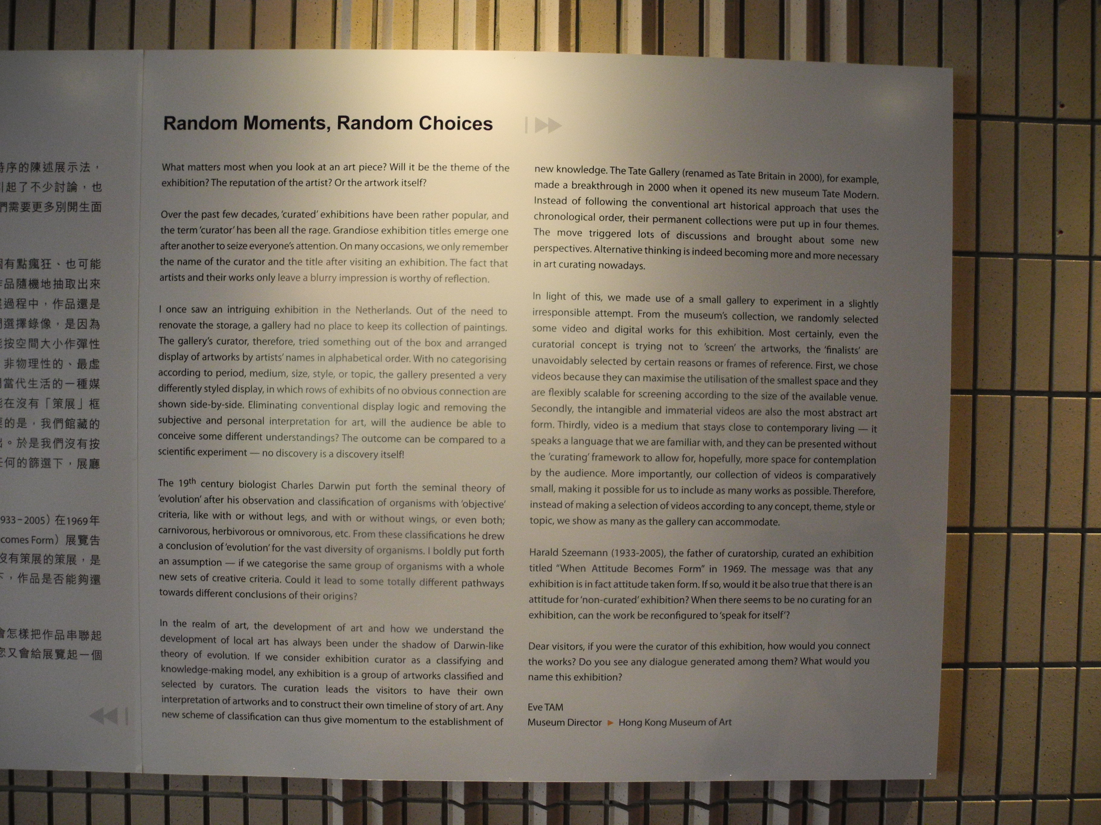 il panel merita la lettura, e magari qualche esperimento personale. All’interno, tra diverse altre installazioni, c’era un video che durava diverse ore: migliaia di volti sempre differenti, ognuno che sfumava nell’altro dopo aver detto “I love you” in lingua cantonese (una cosa del tipo “Oh Oi Lei) guardando dritto nella videocamera. una foto è qui sotto, per rendere l’idea, il video va immaginato. come ogni opera d’arte degna di questo nome apre varchi, dove guardare un po’ più in là.